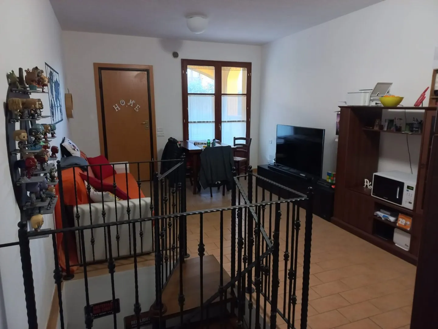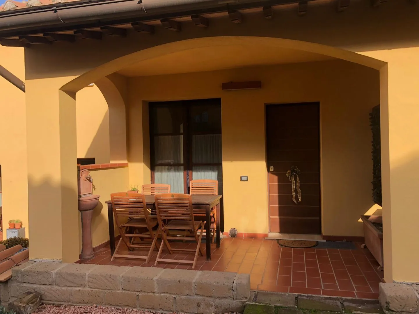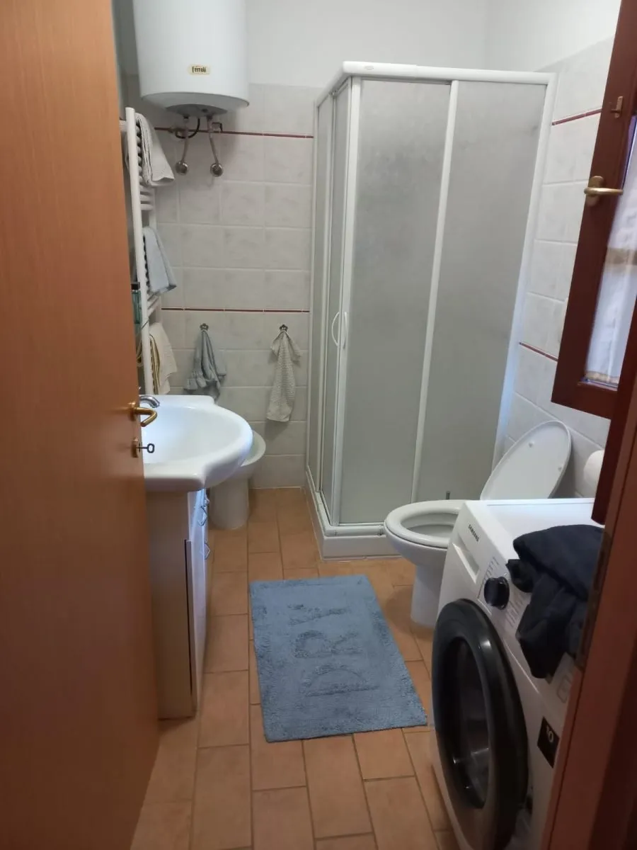 Appartamento situato al piano terra con veranda soggiorno con angolo cottura e bagno, scala a chiocciolo per l’ingresso alla taverna composta da due stanze e un bagno riscaldamento con pompa di calore e aria condizionata in tutte le stanze