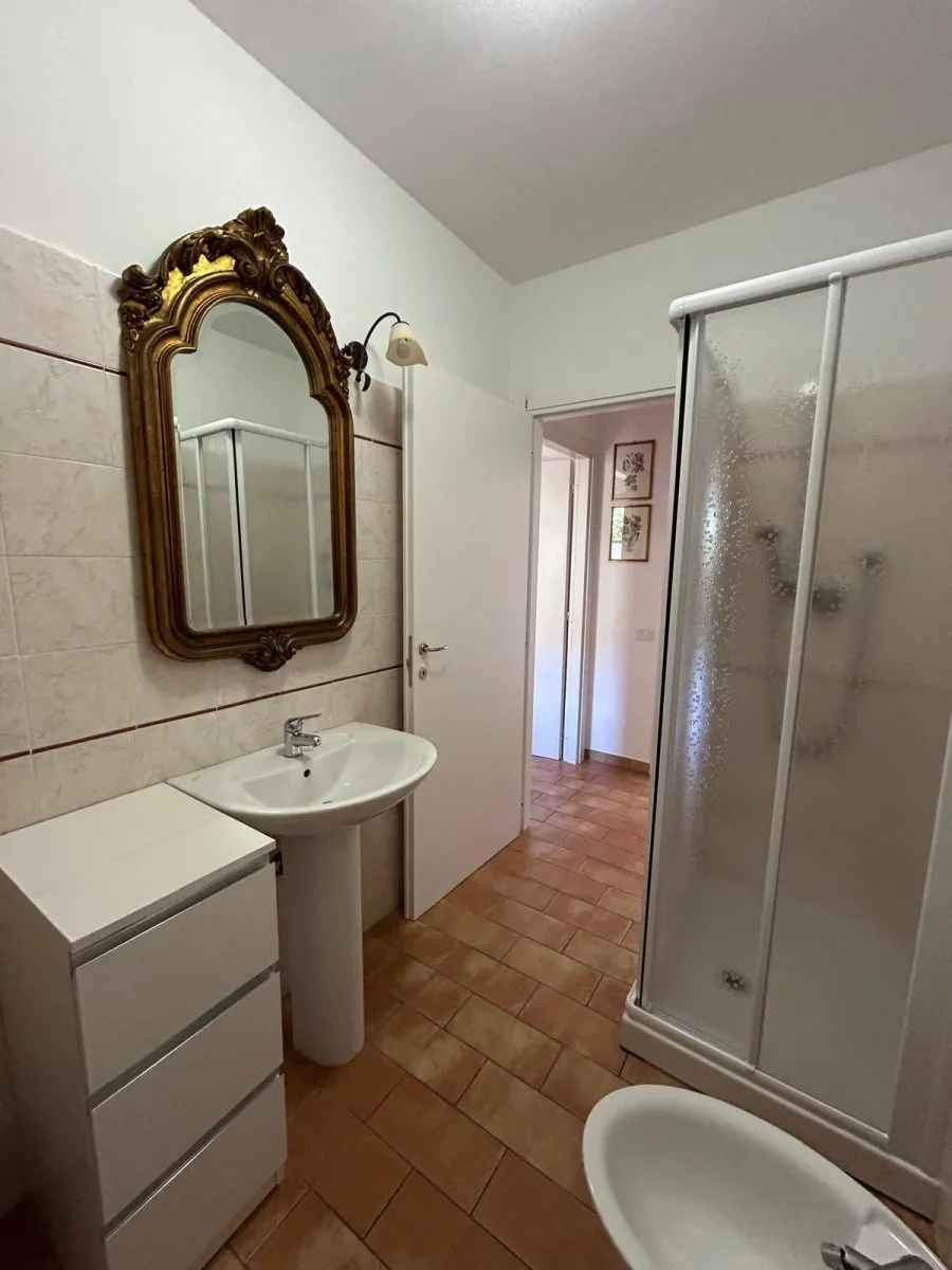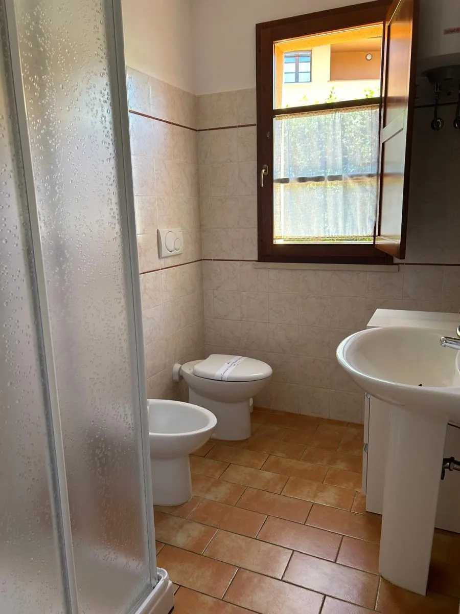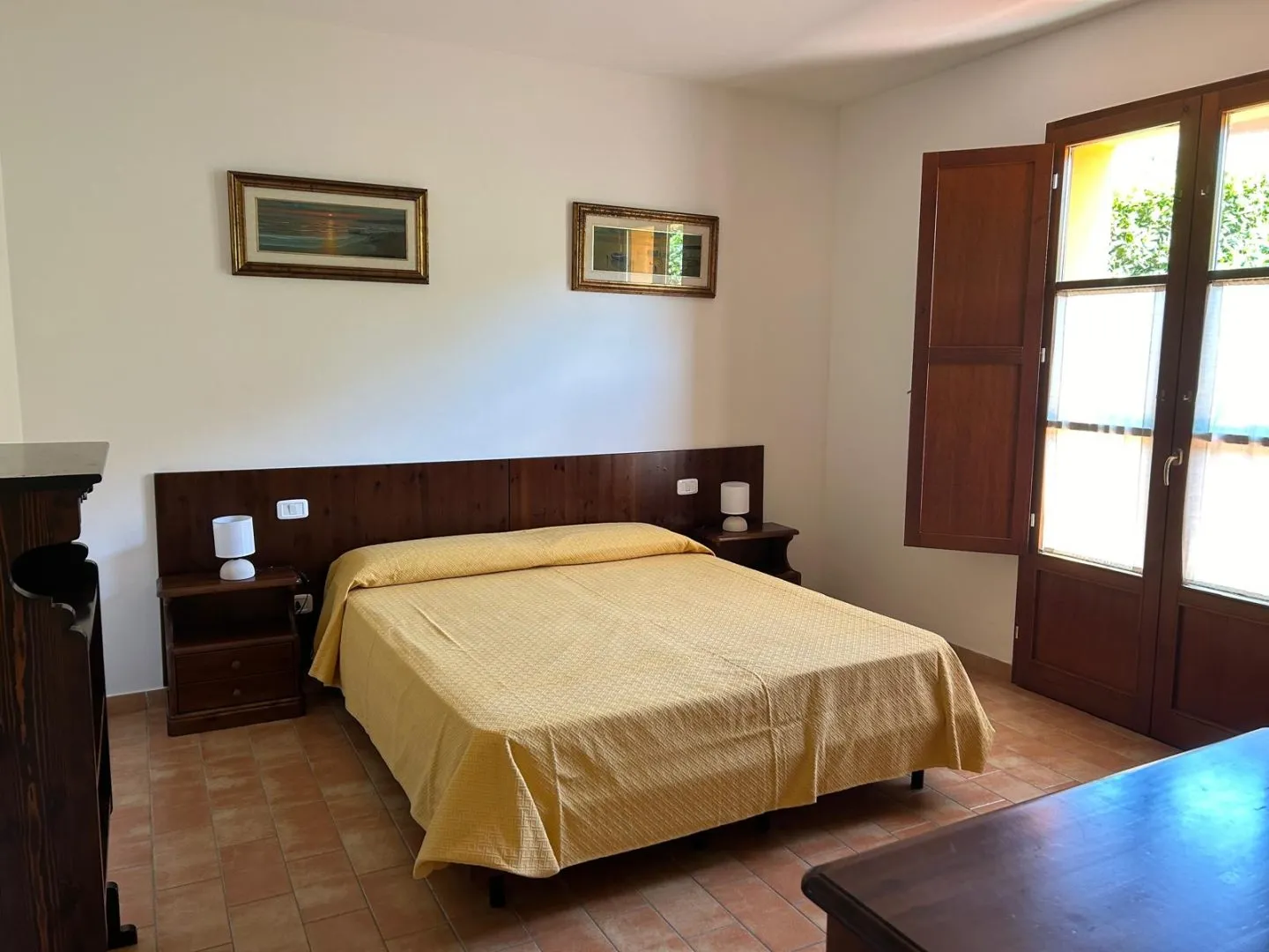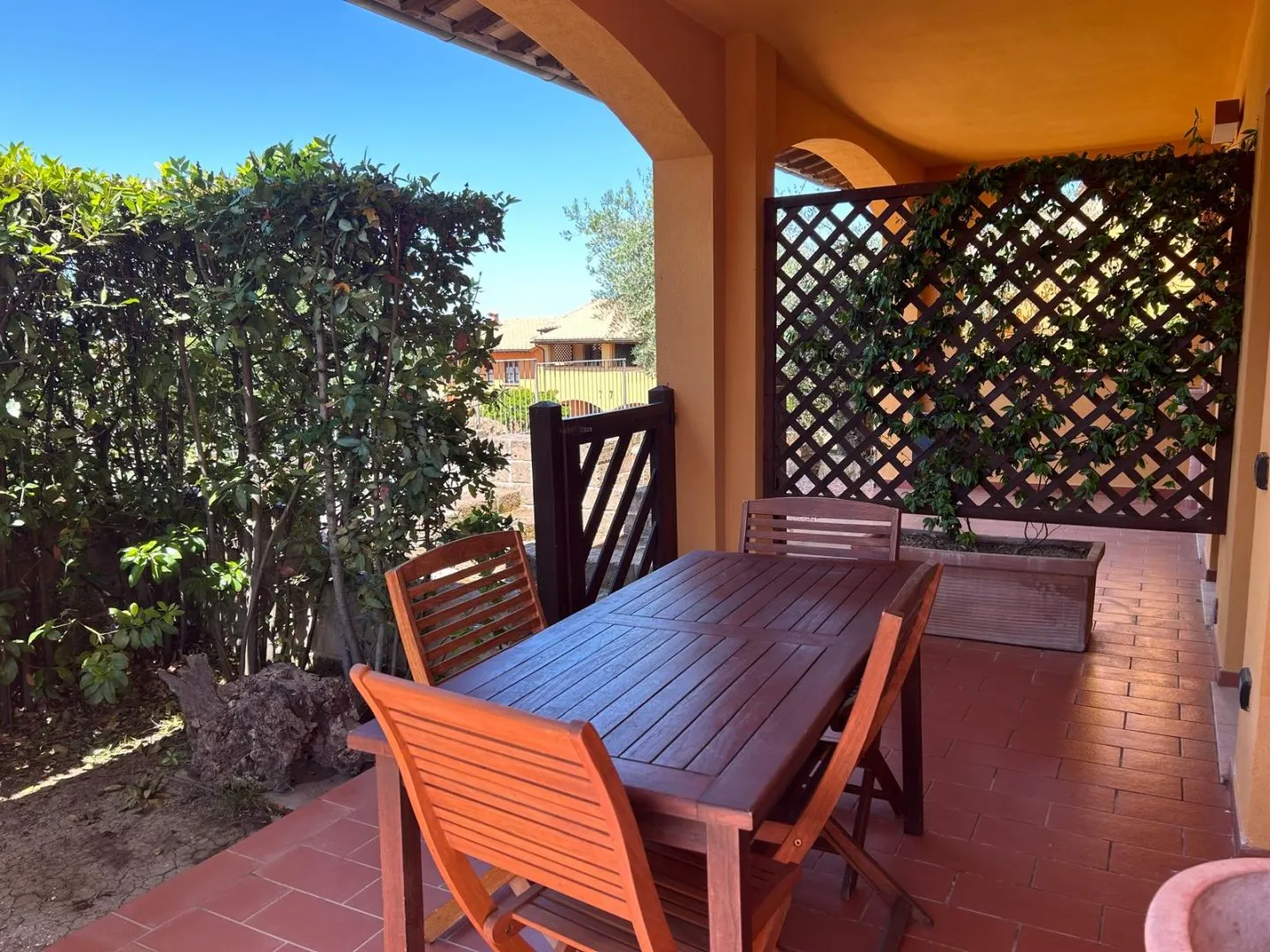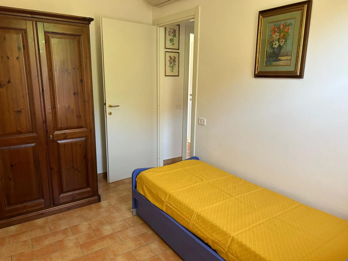 Appartamento al piano terra composto da veranda coperta, cucina-soggiorno, camera matrimoniale, cameretta-studio e bagno con doccia.